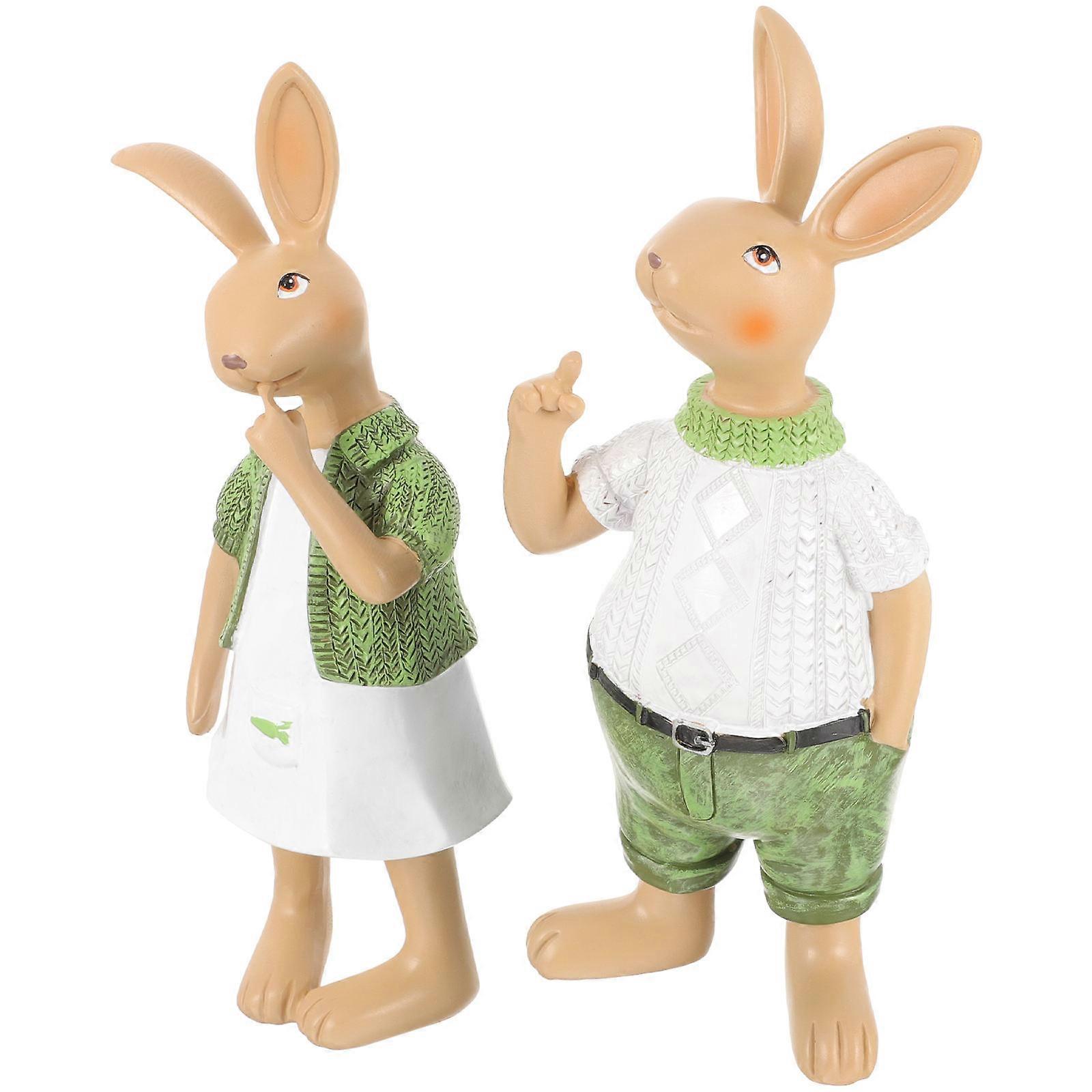Easter Rabbit Ornament Resin Statue for Decoration 2Pairs Bunny Garden Decor