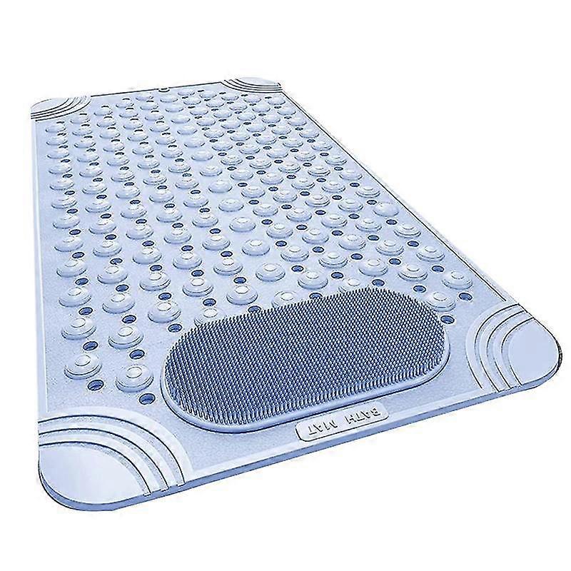 Bathtub Mat Non-Slip Rubber Shower Mat with Drain Holes Suction Cups, Quick Drain, Feet Massage, Bath Mat Blue
