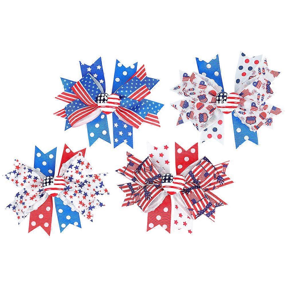 Patriotic American Flag Hair Bow Clip for Kids 4Pcs Independence Day Decor