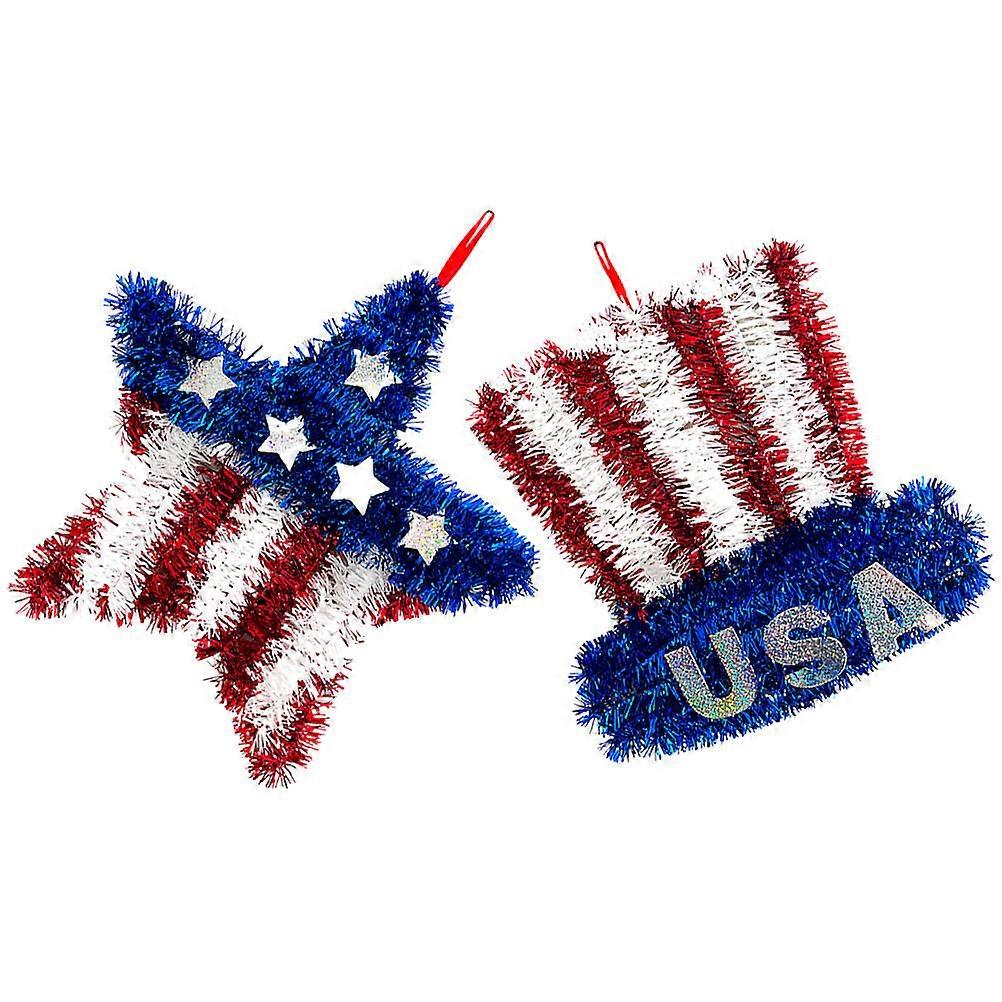 Patriotic Wreath Hanging Ornament for Front Door Decor 2Pcs