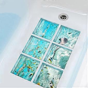 Bath Treads Stickers Beach Pattern Square 3D Adhesive Anti Slip Tub Tattoos Safety Decals Mat Waterproof Shower Tub Sticker Bathtub Appliques For Bath
