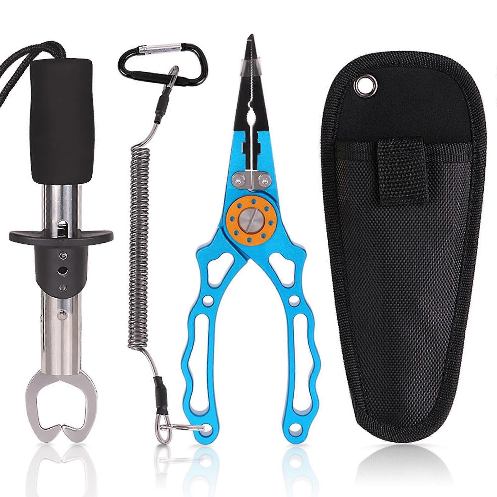 Features 1. The lengthened head of fishing Pliers can go deep into the fish mouth, making it easy to take and change hooks. The tip of the olecranon pliers can open the ring quickly. 2. Multifunctional pliers design, easy to crimp lead and sleeves, cut wire. The fishing pliers have a lock design, which can fix the handle and close the jaws, which is convenient for storage when not in use. 3. High elastic and firm fish control device: the fish controller adopts stainless steel seamless jaw design and a built-in strong spring. Two-finger/single-finger easily pull the clasp to grip the fish lips. Anti-slips handle and strong internal buckle clamp mouth, firmly grasp the big fish out of the water. 4. Wear-resistant and corrosion-resistant process: stainless steel and corrosion-resistant coating ensure long-term use of fishing pliers and fish controllers in fresh or saltwater environments. Exquisite craftsmanship and tough materials guarantee the performances of the product. The ergonomic handle curvature is suitable for one-handed holding. 5. Carry not lost: the set comes with fishing accessories and tools. Fishing pliers are equipped with high-elastic miss rope, which can be used with storage bags, buckled, and hung on the waist. The handle of the fish controller comes with nylon rope and an adjustable buckle. The nylon rope is long enough to fit on the hand without affecting the operation and to prevent falling off. Specification Material: Aluminium alloy, Tungsten steel Color: Black, Red, Blue Size: 20 x 7 cm Weight: 118 g Package Include: 1 Fishing Pliers 1 Sheath 1 Lanyard 1 Storage Bag 1 Fish Controller 1 Manual