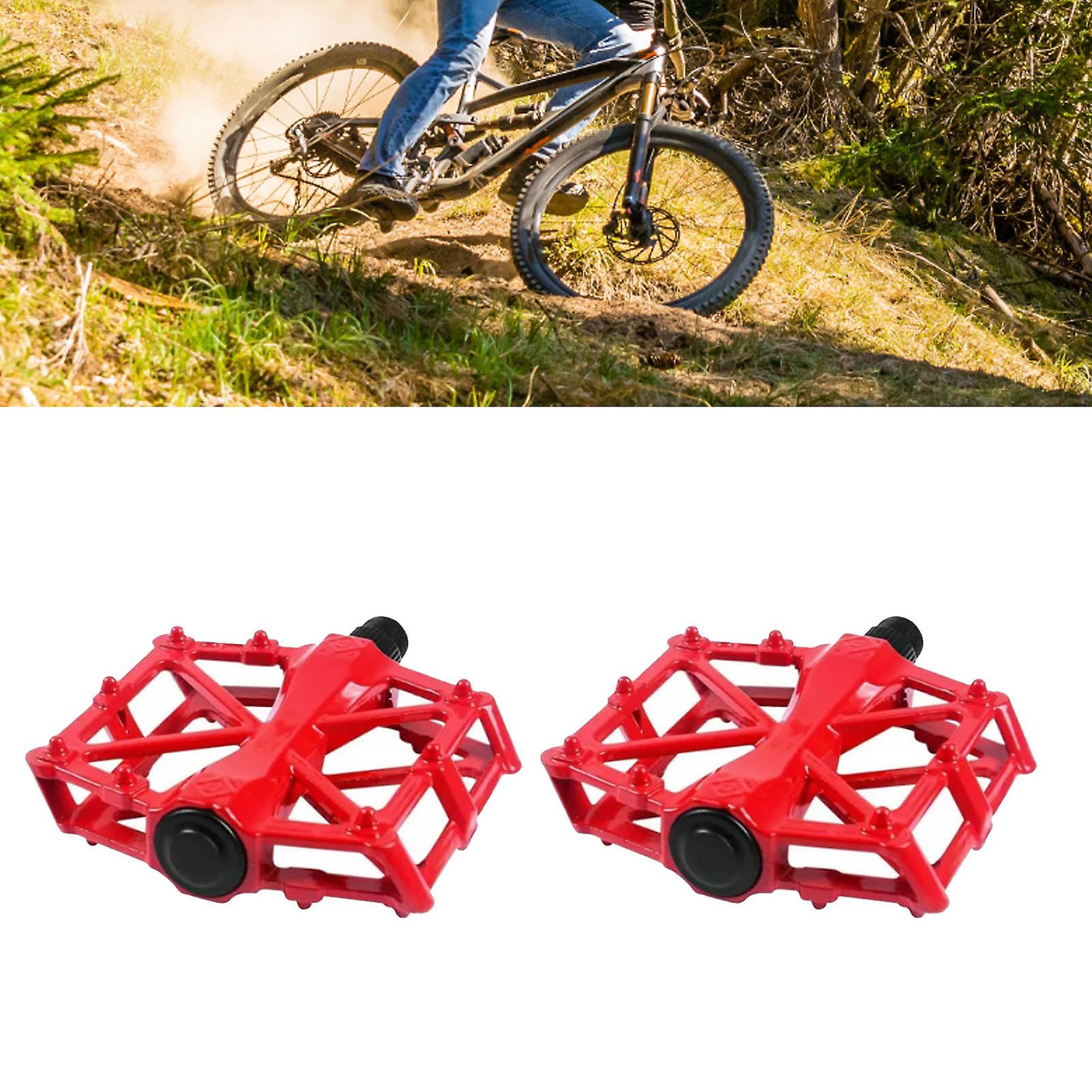 Mountain Bike Pedals Aluminum Alloy Stable Hollow Design Light Weight High Strength Wide Road Bike Pedal Set Red