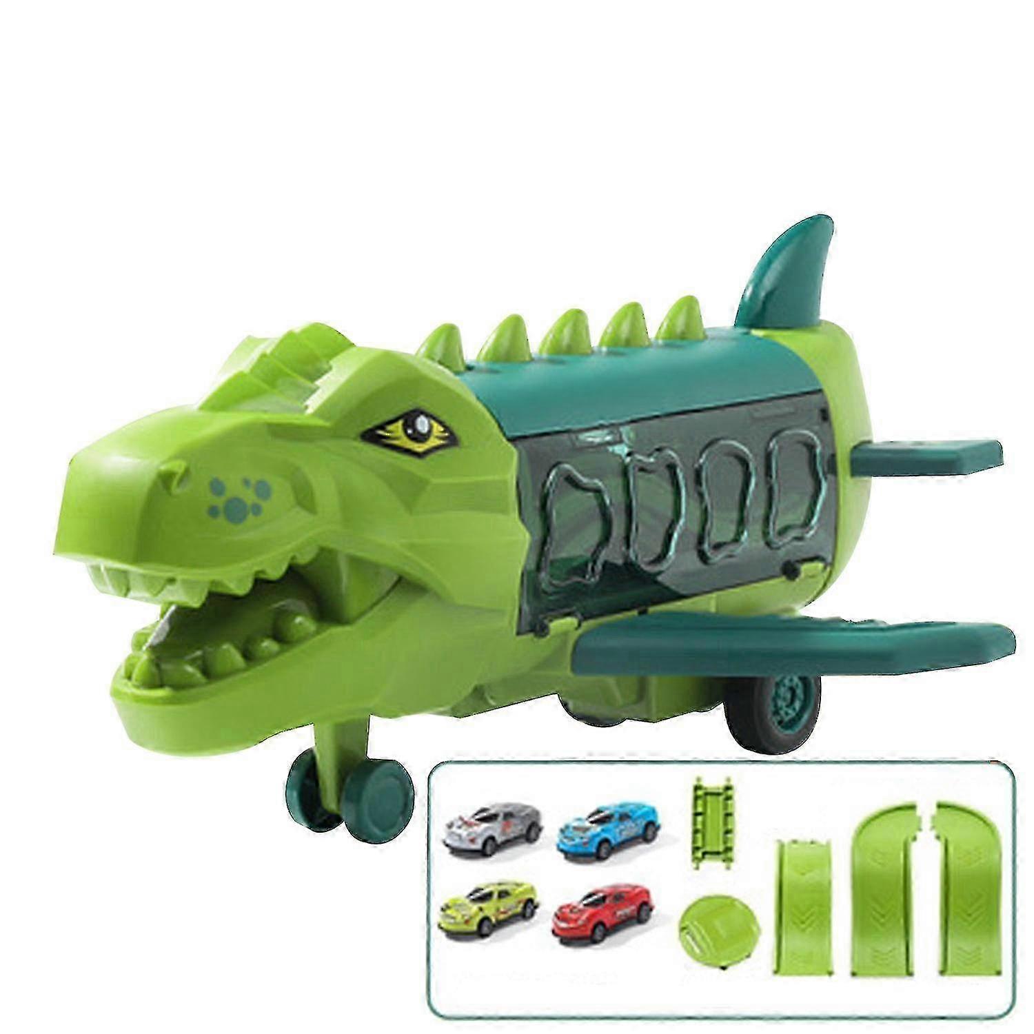 Dinosaur Plane and Track with 6 Tin Cars, 4 Dino Cars, and Play Mat Included