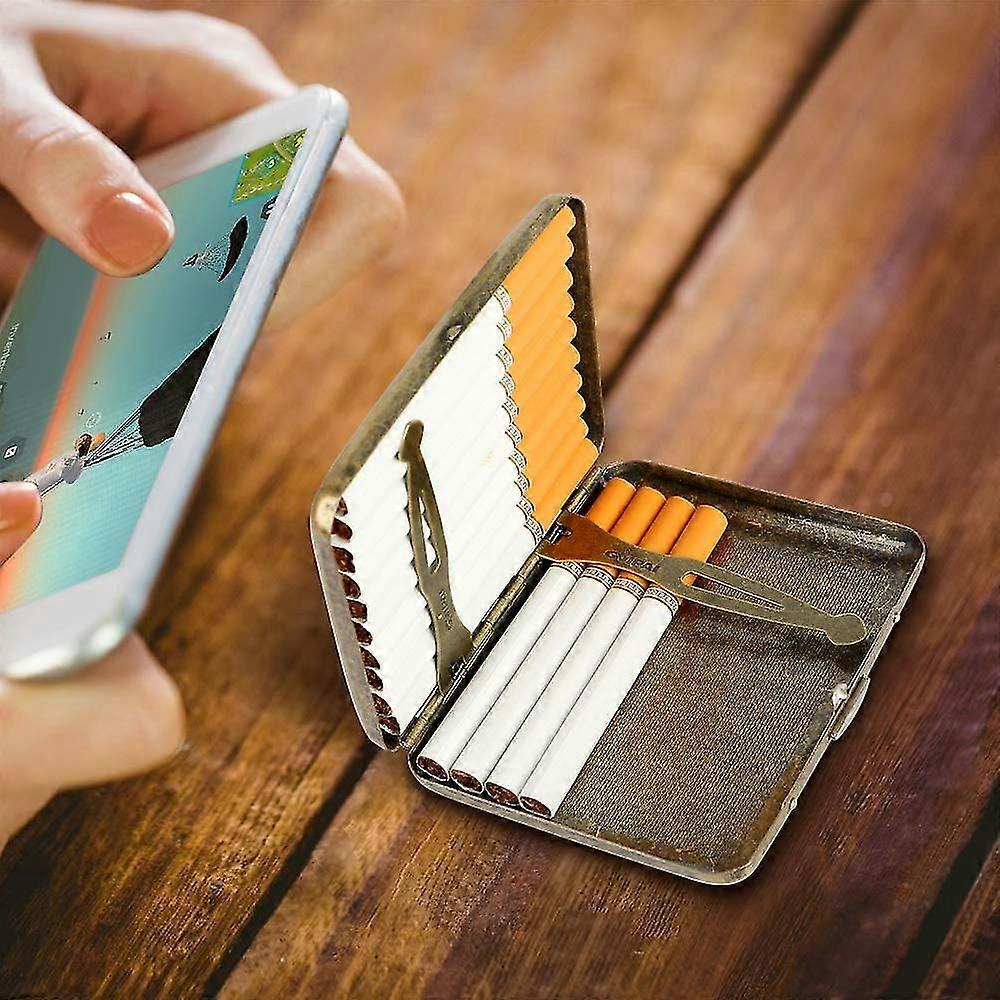 Cigarette Case Retro Metal Cigarette Box Double Sided Spring Clip Open Pocket Holder For 20 Cigarettes