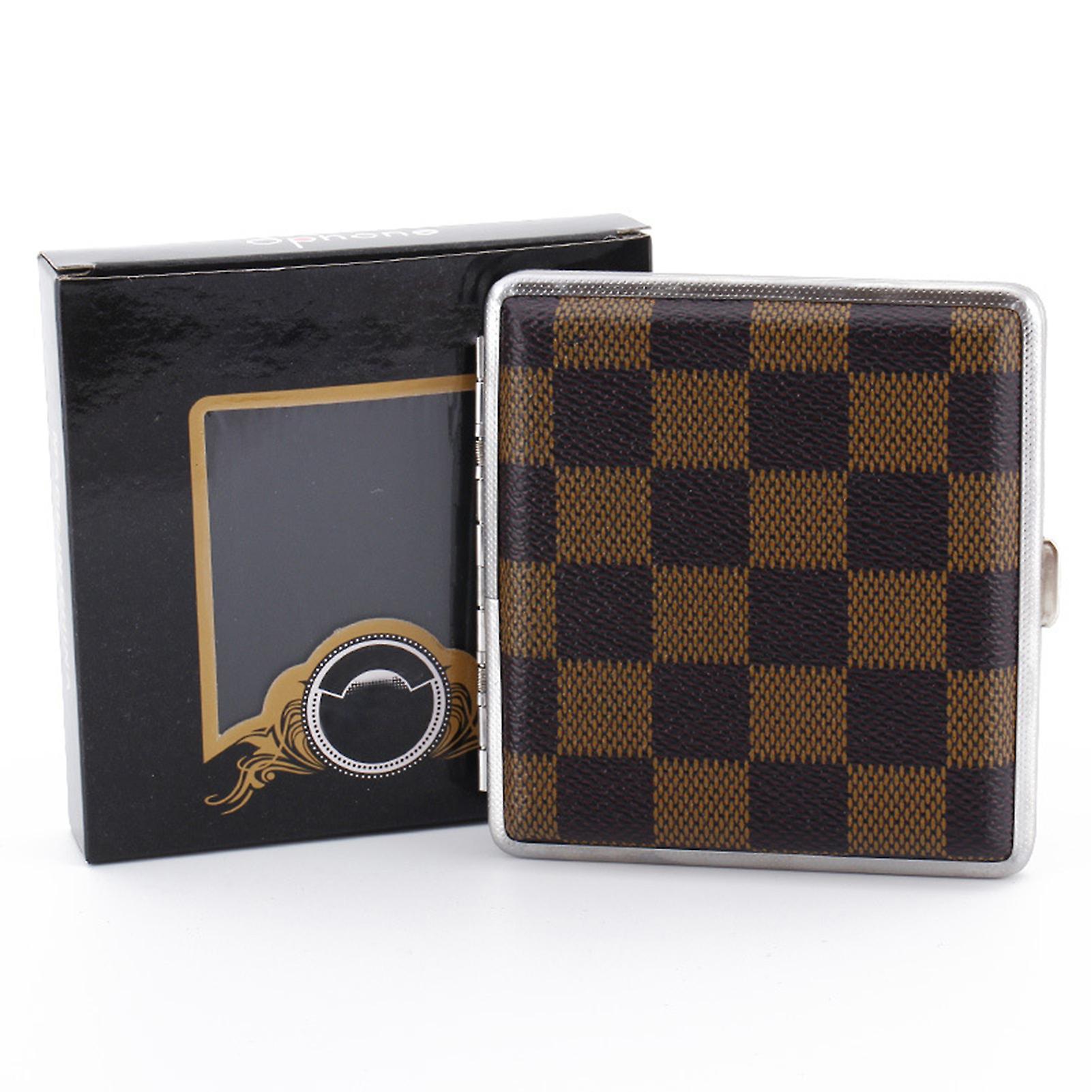 Cigarette Case Portable Checkered Pattern Personalized Flip Cover PU Leather Metal Men's Cigarette Case