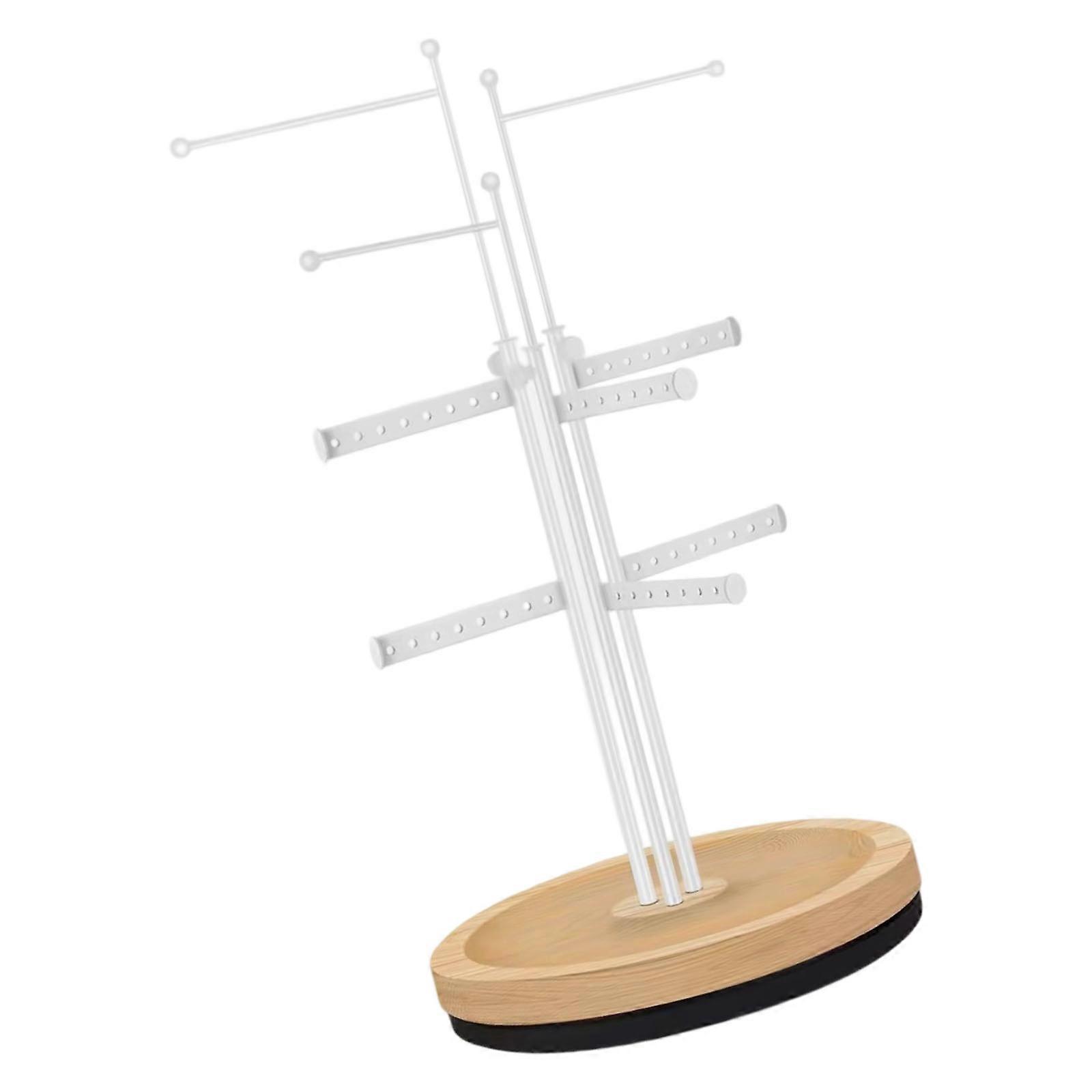 Rotating Jewelry Display Stand With 360 Degree Rotating And Wood Metal Base For Necklace Earring Bracelet Storage White