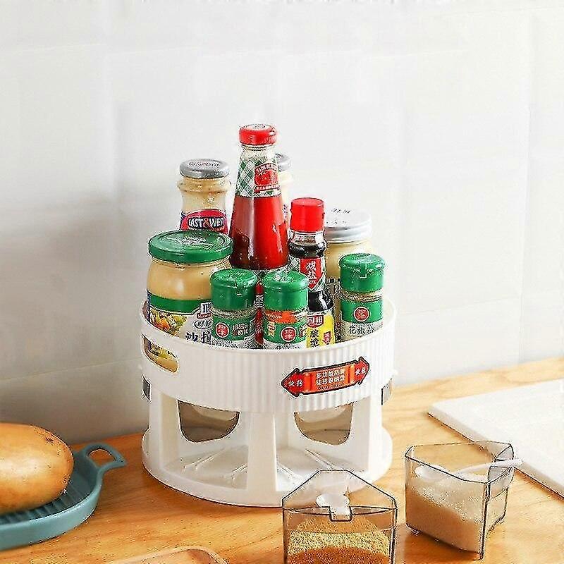 Rotatable Spice Grid Seasoning Box Rack Kitchenware Double Layer Corner Storage Holders