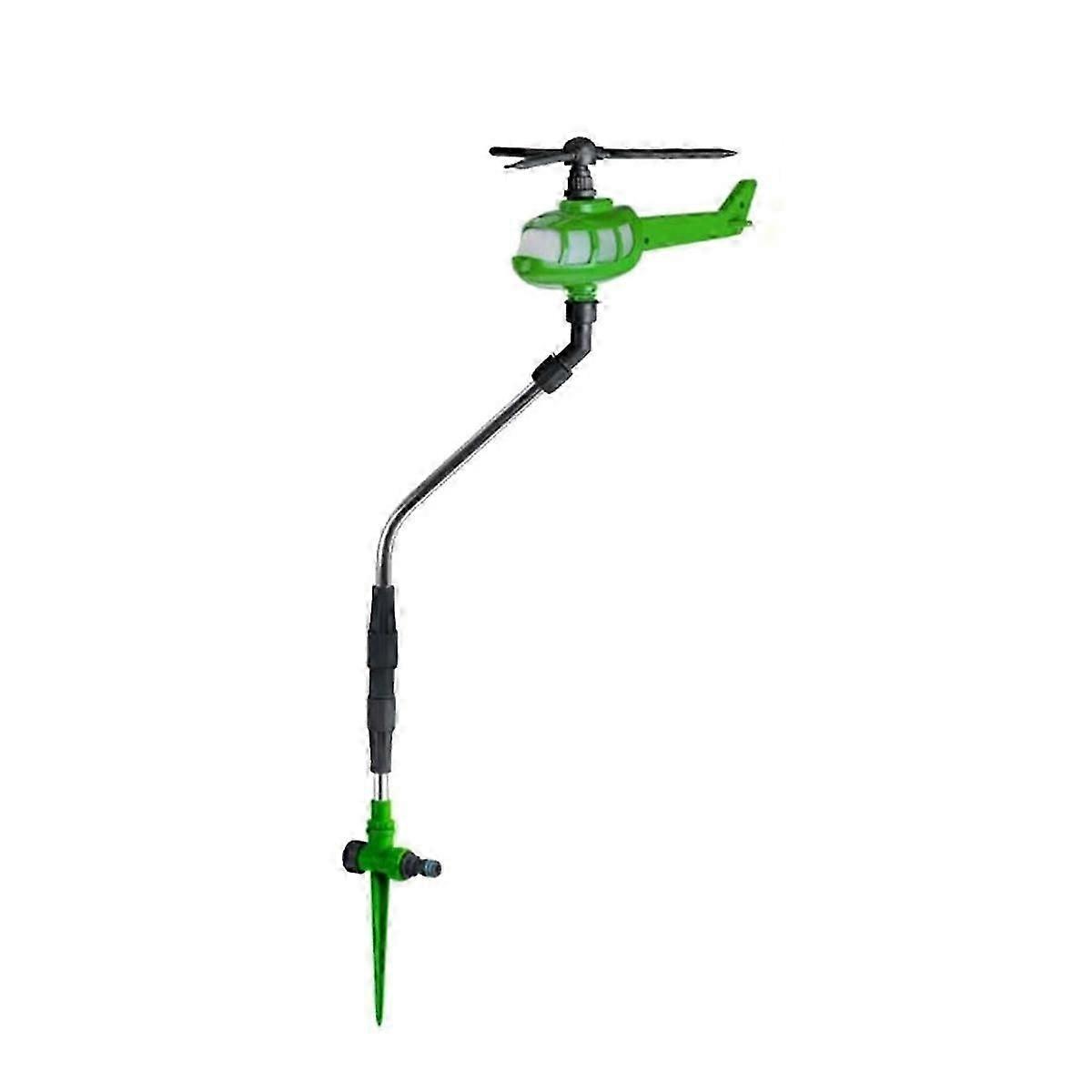 Wide-Area Coverage with Efficient Water Distribution: The Rotating Helicopter Sprinkler is designed to cover a large area with its 360 rotating propellers. Its advanced spray pattern ensures even water distribution, hydrating your lawn thoroughly and efficiently. The precise water flow promotes healthy grass growth while conserving water, making it an eco-friendly choice for your garden Fun & Whimsical Helicopter Design Add a playful touch to your garden care routine with the eye-catching helicopter design. The unique, fun shape turns watering into an entertaining activity for both kids and adults. Heavy-Duty, Weather-Resistant Construction: Built to withstand the elements, this helicopter sprinkler features durable, UV-resistant materials and corrosion-proof components. Whether it's under the harsh sun or rainy conditions, the is designed for long-lasting, reliable performance without cracks, rust, or wear. It's a sturdy choice for all-weather use in your garden. Easy Setup & Effortless OperationSetting up the Rotating Helicopter Sprinkler is simple! Just attach it to any standard garden hose-no tools or complex assembly required. You can adjust the spray range and rotation speed in seconds to suit your lawn's needs. Perfect for both quick watering sessions and larger coverage areas, from small patios to expansive lawns Family Fun-Fueled Lawn Care: The brings fun and functionality together, making lawn care enjoyable for all ages. Watch as the helicopter spins and glides while watering your lawn, turning a routine task into an exciting family activity. Color: Green & Black Material: Plastic Package Contents: 1 x Rotating Helicopter Sprinkler Only the above package content, other products are not included. Note: Light reflection and different displays may cause the color of the item in the picture a little different from the real thing. The measurement allowed error is +/- 1-3cm.
