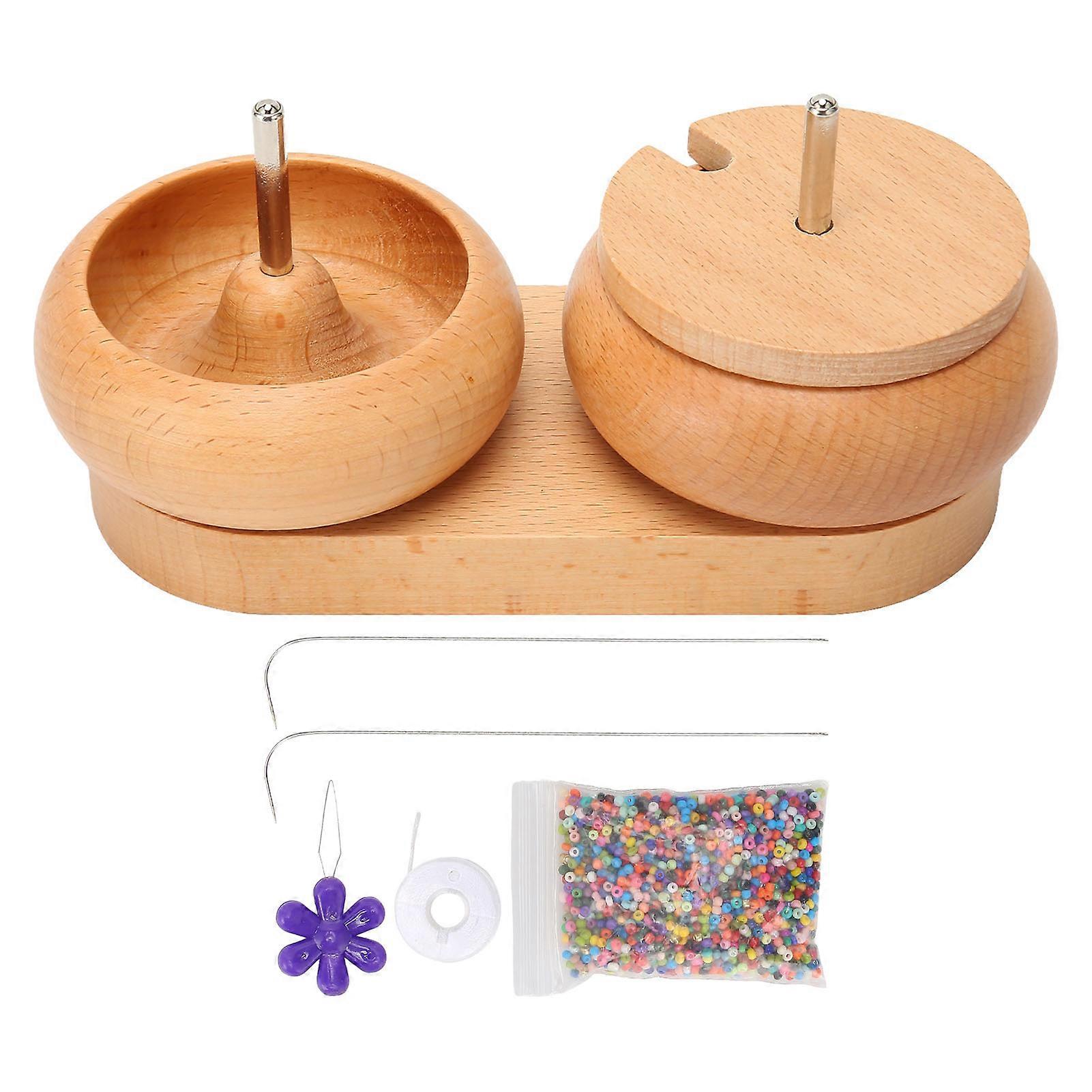 Bead Spinner Bowl Polished Wood Cover Metal Shaft Stable Oval Base Bead Maker for Jewelry Making DIY