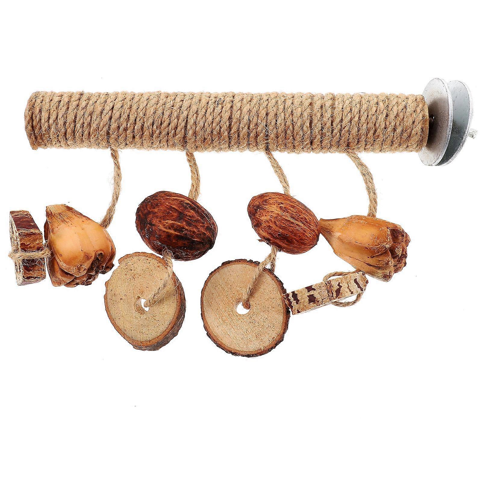 Parakeet Perch with Hanging Small Chew Toys Bird Claw Grinding Perch Wooden Parrot Cage Perch