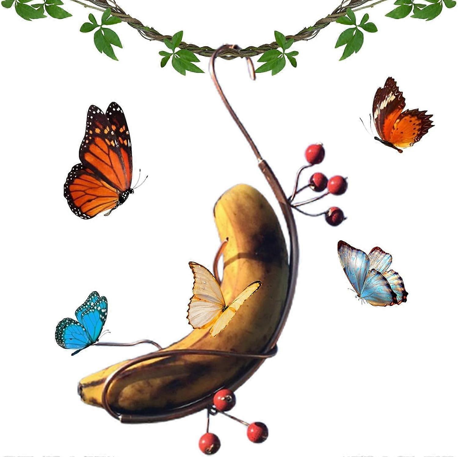 Butterfly Hummingbird Feeder Outdoor, Mini Hanging Banana Feeder, Copper Vine Sturdy Holder, Attracts Butterflies, Bees & Birds to Garden (1)