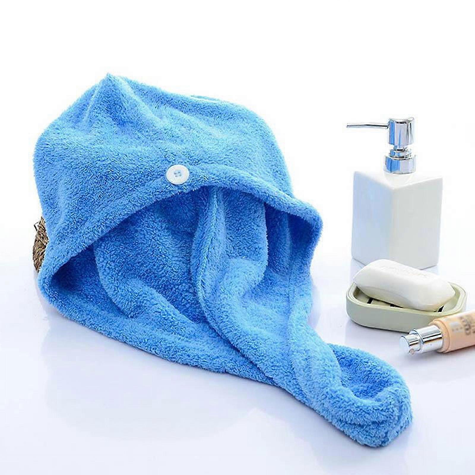 Hair Towel Wrap,Hair Drying Towel with Button, Microfibre Hair Towel, Dry Hair Hat, Bath Hair Cap