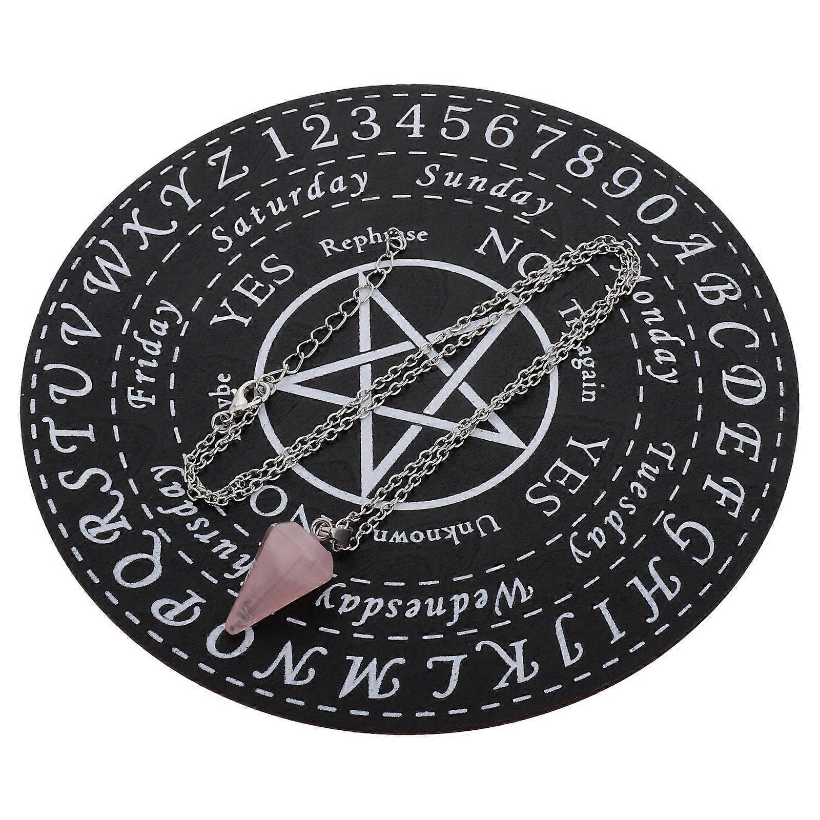 Enhance your home with this elegant wooden divination plate, suitable for both decoration and spiritual use. The board's intricate design and natural wood finish make it a beautiful addition to any room. Use it to your energy during meditation or as a unique piece of decor that reflects your spiritual interests. Features -Color:Assorted Color -Material:Wood, metal -Size:15.00X15.00X0.30cm/5.89X5.89X0.12in -Delicate craftsmanship: expertly made with precision to ensure a sleek finish and quality -Detailed engravings: showcases intricate and beautiful carvings that demonstrate exceptional craftsmanship -Functional and decorative: suitable for meditation, home decoration, and various other uses, making it a versatile addition to your decor -Enchanting design: the unique pattern adds a captivating and mystical element to your space -Chic hanging decoration: brings an artistic and sophisticated touch to your home decor with its elegant design Package list: 2 x pendulum board 2 x pendant
