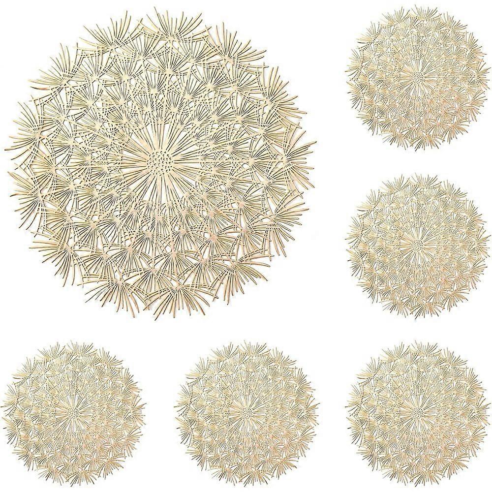 Pressed vinyl placemats, round placemats metal dandelion gold placemats for table centerpieces, wedding decor, party, kitchen