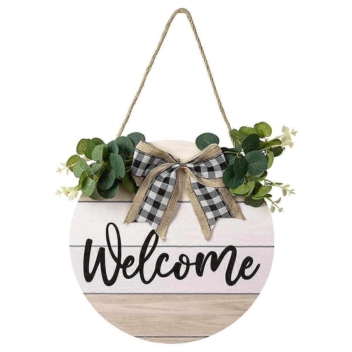 Welcome Sign Front Door Bright Green Leaf Arch Garland Rustic Round Wooden Wall Decor for Farm, Porch, Door
