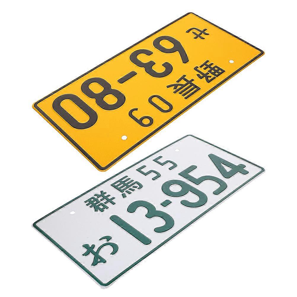 Car License Plate Japanese Aluminum Alloy Interior Decoration White with 2Pcs