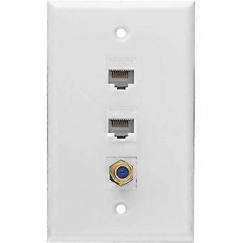 Ethernet Coax Wall Plate,2 Port Cat6 Rj45 And 1 Port F Type Connector Coax Female To Female Wall Pl