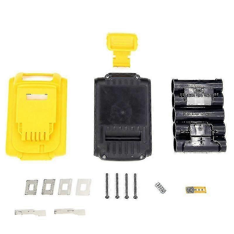 Plastic Case (no battery cell ) PCB Circuit Board For 18V Li-ion BatteryIt Can fit 5 pcs 18650 BatteriesIt is used to repair and assemble batteries pack,only for people who are familiar with battery performance and have practical experience in battery assembly.Battery Replacement Plastic Case For 20V DCB201,,,18V Li-ion Battery Cover PartsColour:blackMaterial:plasticSize:13.5 x 10 x 9cmPackage Contents:1 set * plastic shell6 * nickel sheets4 * screws1 * spring1 * light stickerOnly the above package content,other products are not included.Note: Light and different displays may cause the color of the item in the picture a little different from the real thing.The measurement allowed error is +/- 1-3cm.