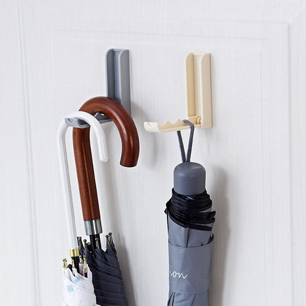 Plastic Folding Self Adhesive Wall Over the Door Hook Hanger Rack for Clothes Bag Towel (Beige)