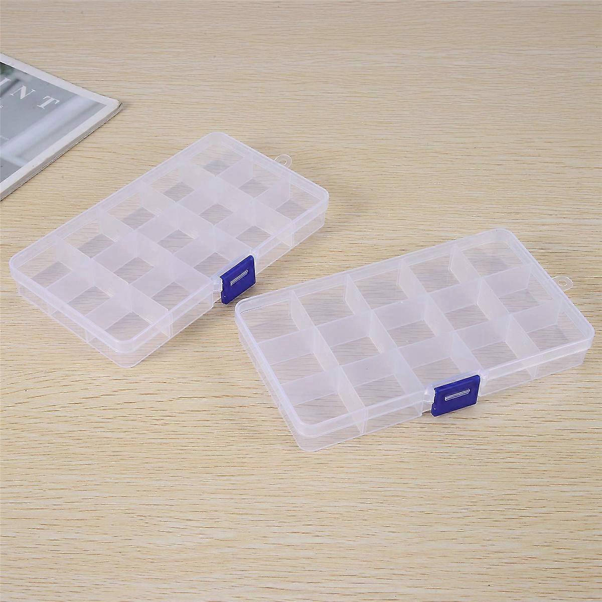 Plastic Organizer Box, 2 Pack Clear Bead Organizer for Jewelry Tackle Earring Craft Beads(15 Grids)
