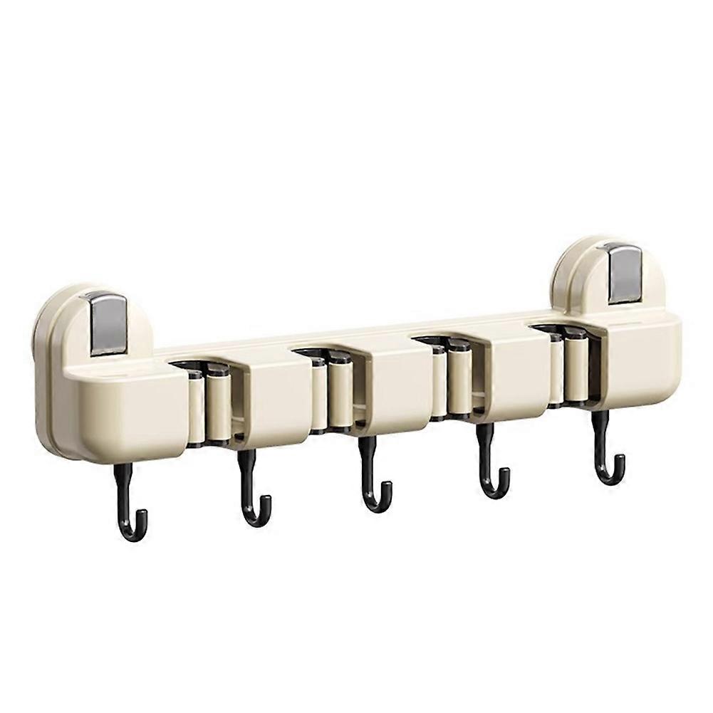 Plastic Suction Cup Mop Clamp 4 Position Wall Mounted Mop Clip Rack Non Punching Space Saving Broom Hanger Bathroom