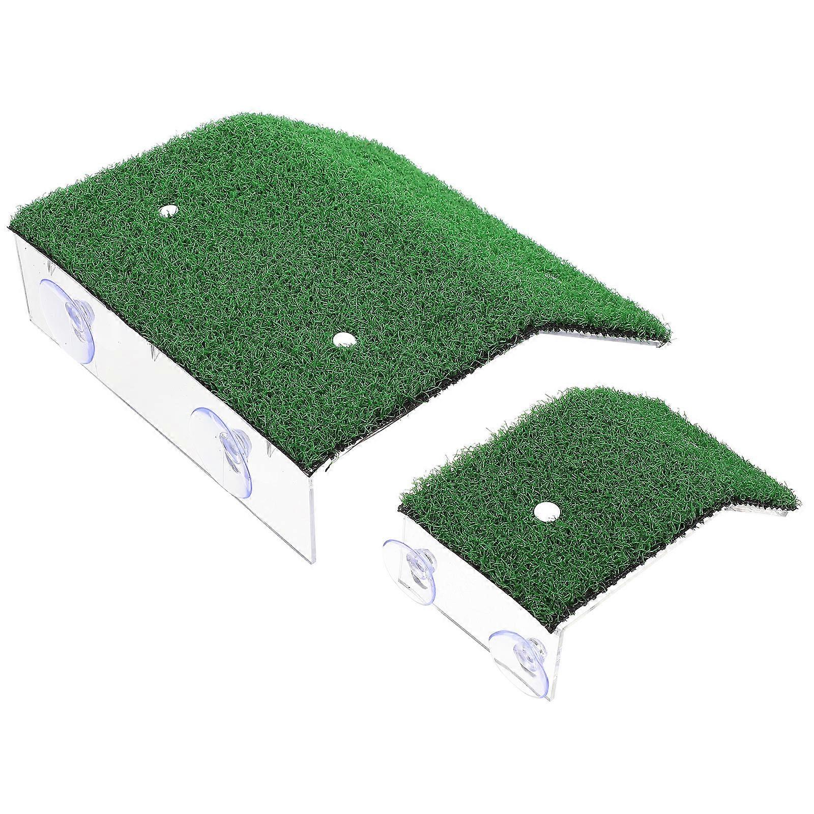 Turtle Basking Platform with Simulation Lawn – Durable Reptile Resting Terrace for Aquariums & Reptile Boxes, Includes Suction Cups for Easy