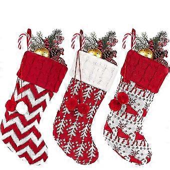 Knitted Christmas Stockings, 3 Pack Large Size Xmas Hanging Stockings for Christmas Decorations and Family Holiday Season Decor (White & Red)
