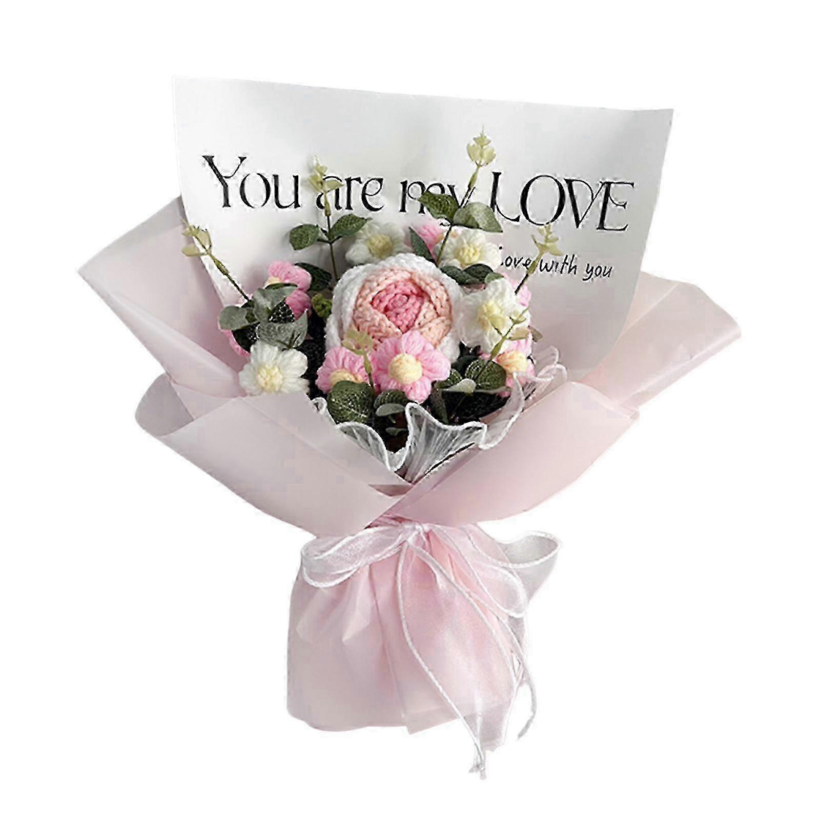 Knitted Flower Bouquet Mother's Day Gift from Daughter Son Finished Handmade Home Decor Crochet Flowers for Wedding Her Women 25-26s