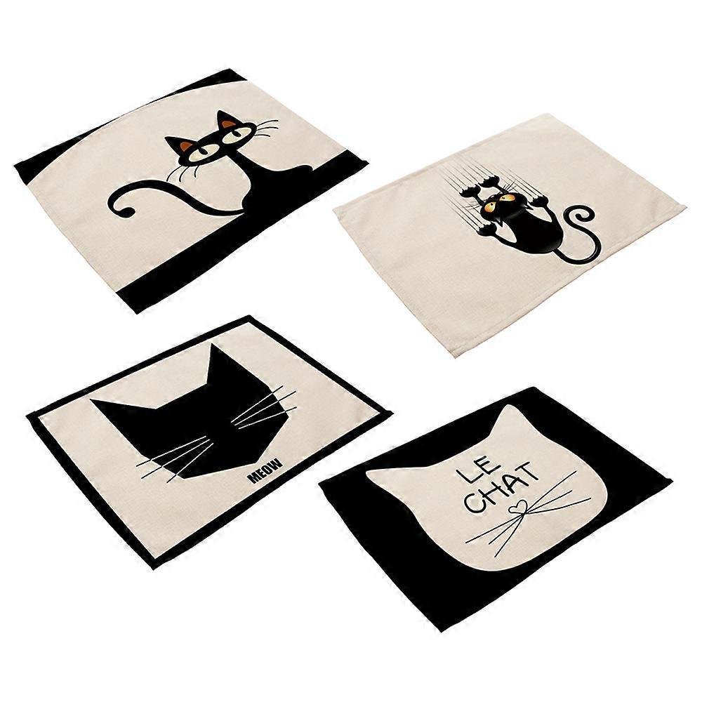 Washable children's tableware pad 4-piece heat-resistant non-slip Christmas tear-proof suitable for family dining table 42 x 32 cm (cat)