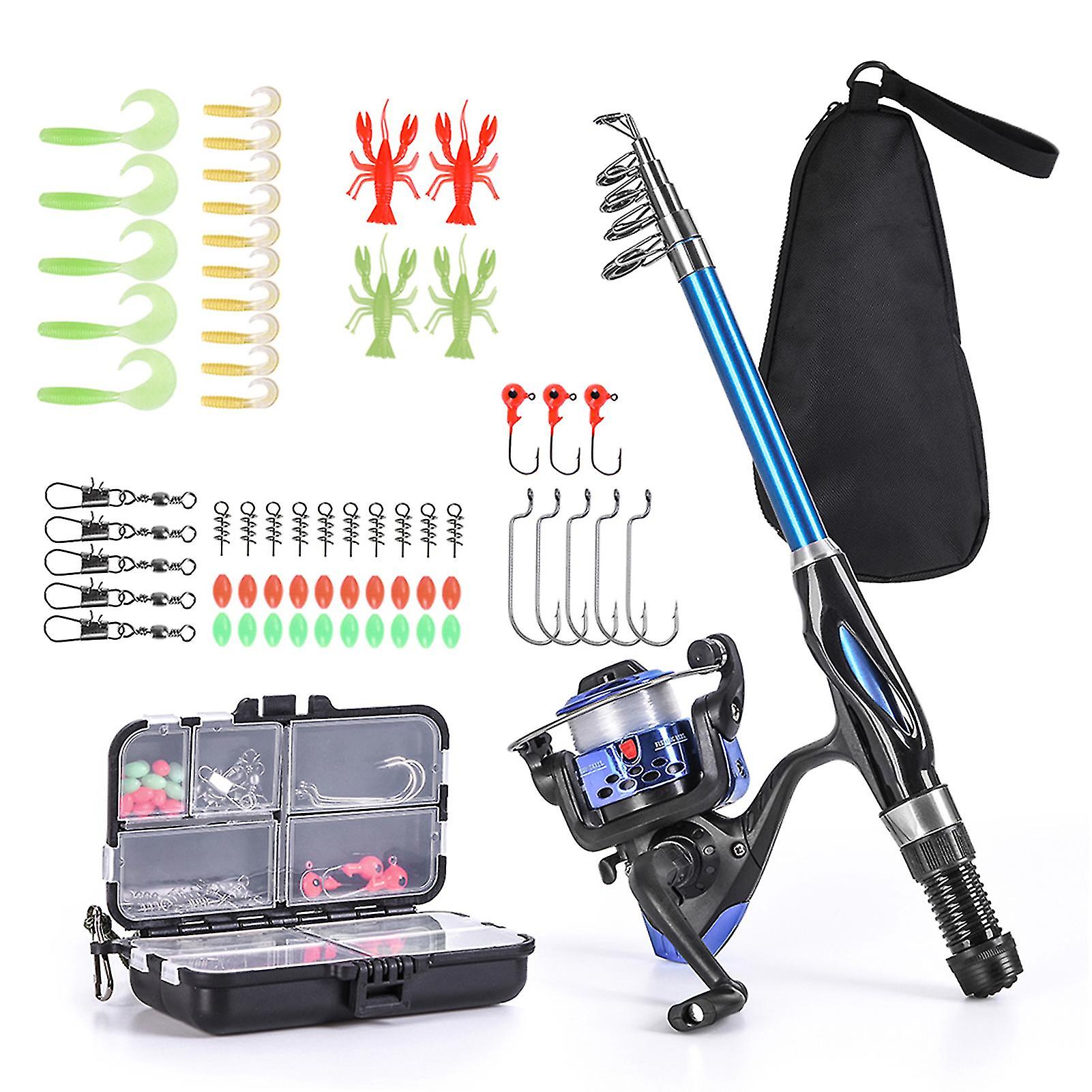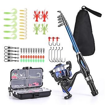 Fishing Rod Reel Combo Full Kit 1.5m Telescopic Fishing Rod Spinning Reel Set With Hooks Soft Lures Barrel Swivels Storage Bag