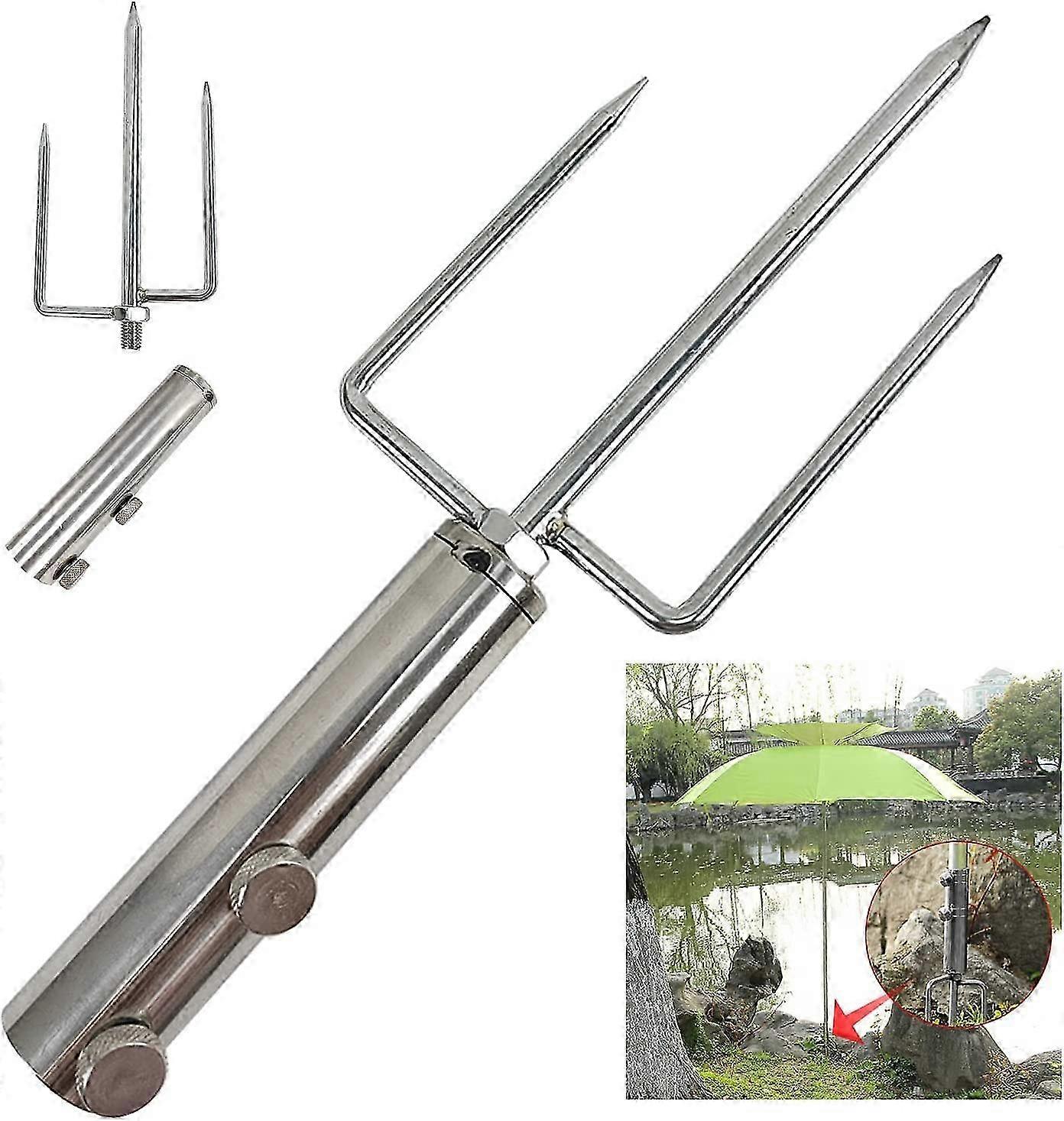 Beach Umbrella Feet, Detachable Umbrella Stand, Adjustable Fishing Umbrella Base, Outdoor Metal Umbrella Ground Socket for Garden Lawn Beach (Stainles
