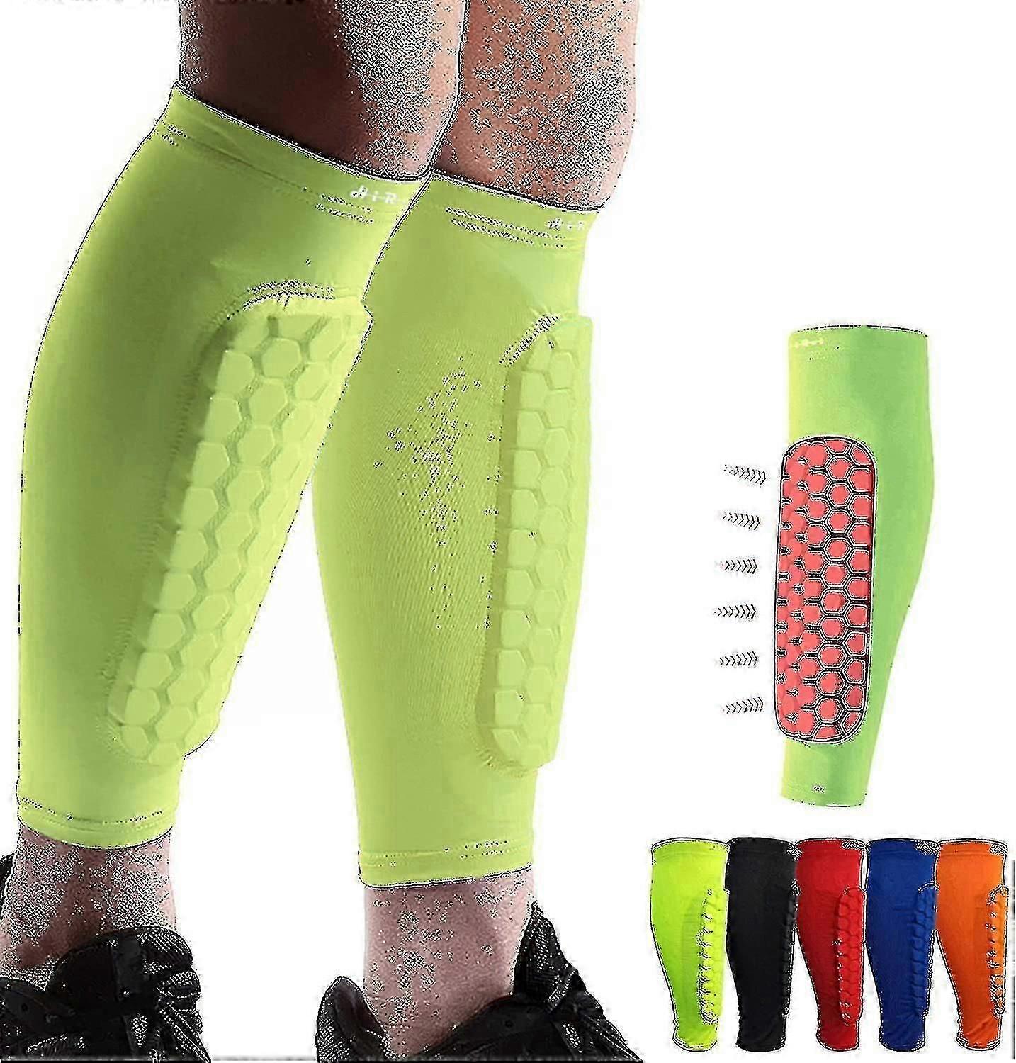 Soccer Shin Guards Shin Pads For Kids Youth Adult Calf Compression Sleeve Honeycomb Padsbright Yellow/large
