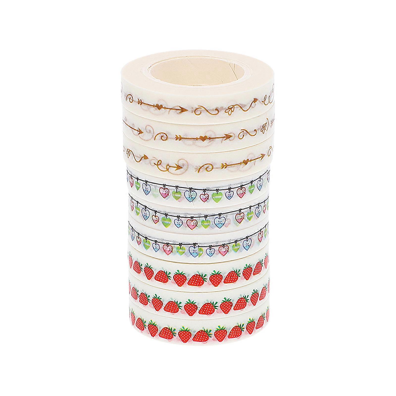 Assorted Color 9Pcs Borders DIY Tapes Cartoon Narrow Decorative Adhesive Tapes for Planner Diary Perfect for Decorating Photo Frames Journals
