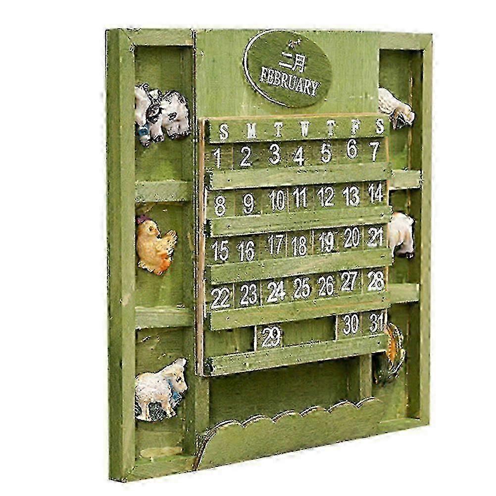 Quality 1Pc Manual Calendar Square Wooden Calendar Hanging Xmas Wooden Decor (Green)