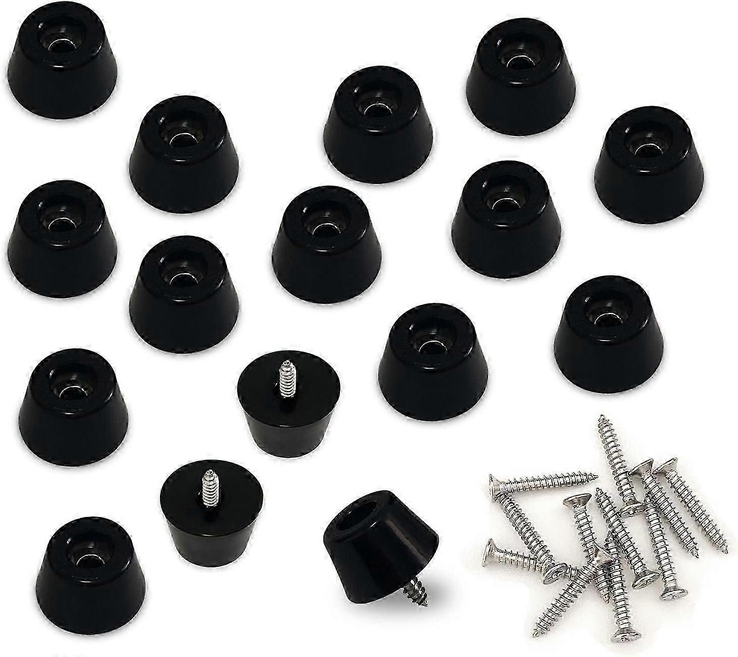 Lot of 16 Black Furniture Feet in Rubber for Anti-Slip with Metal Disc and Screws - Suitable for Furniture Types with Feet That Prevent Sliding