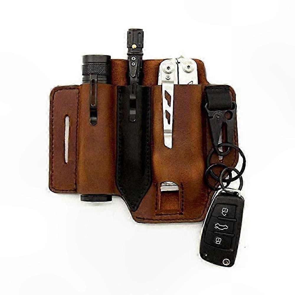 Multifunctional Leather Waist Organizer with Key Holder, Knife Sheath, and Flashlight Holster for Outdoor Activities