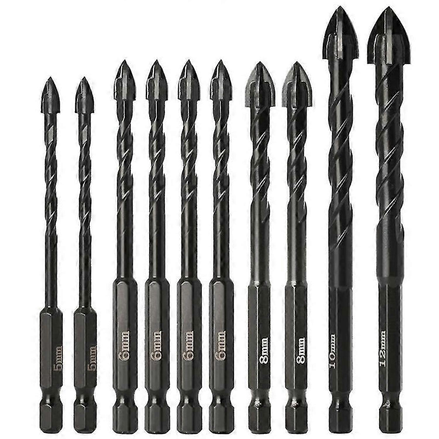 Multifunctional Ceramic Tile Drill Bit Black Hexagonal Handle Screw Triangular Drill 10PC Set Hexago