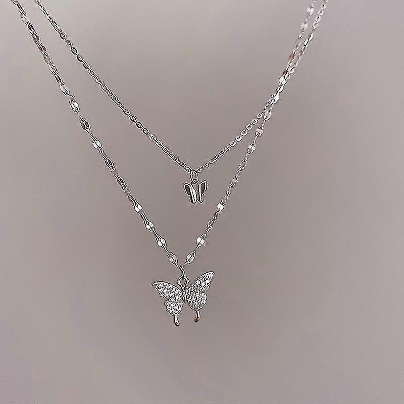 Luxury Necklace For Women Butterfly Necklace Shiny Double Chain Clavicle Pendant Anniversary Gift Jewelry Necklaces For Women