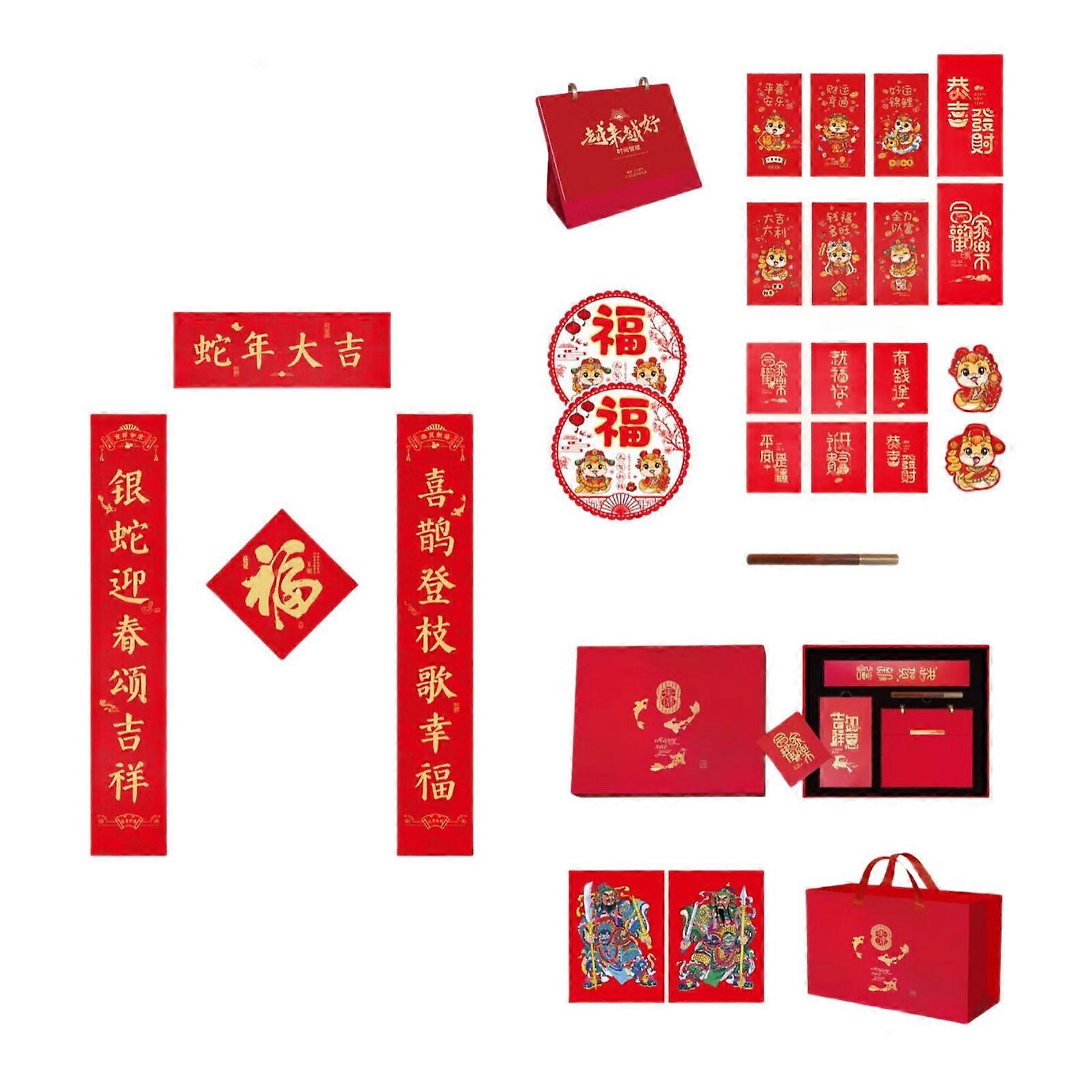 Luxurious Silk Gold Embossed Jacquards Ribbon Couplets Delicate 2025 Chinese New Year Magnetic Sticker Decors Set