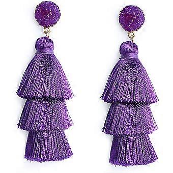 Colorful Layered Tassel Earrings Bohemian Tiered Tassel Druzy Stud Dangle Drop Earrings for Women Teen Girls Birthday Christmas Valentines Day Gift