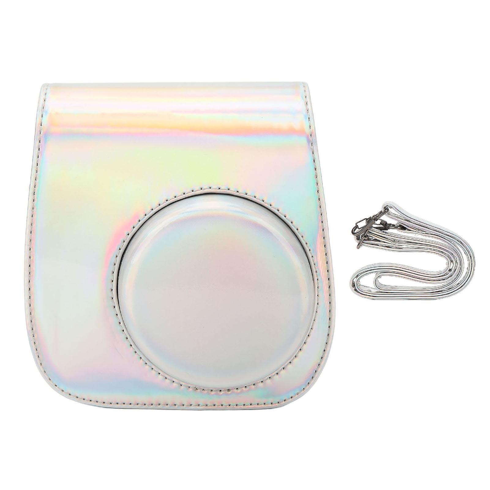 Colorful PU Leather Case with Adjustable and Removable Shoulder Strap for Fujifilm Mini 11 9 8 Instant Camera, Silver