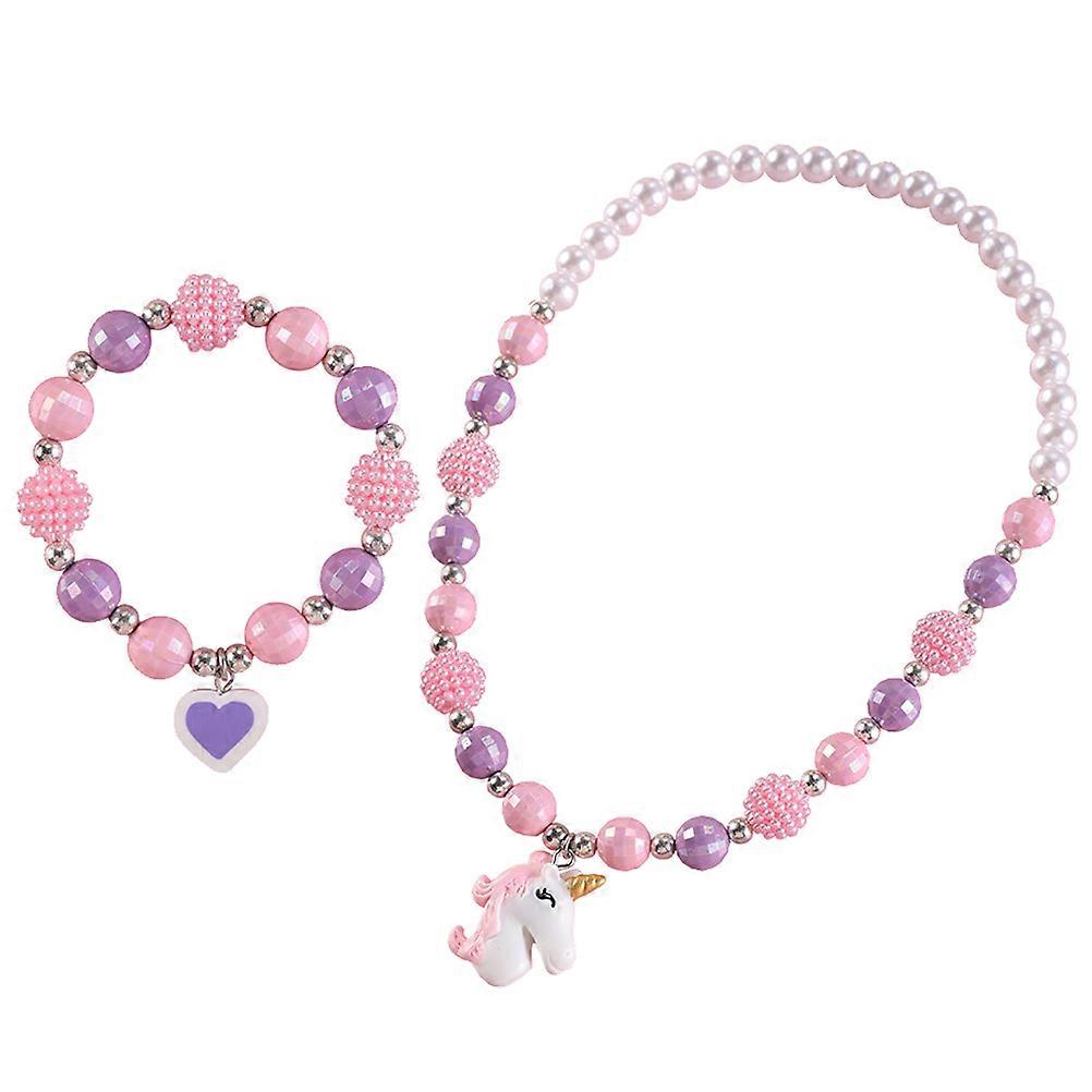 Colorful Necklace Bracelet Set for Adornment 4Pcs Cute Children Wrist Jewelry