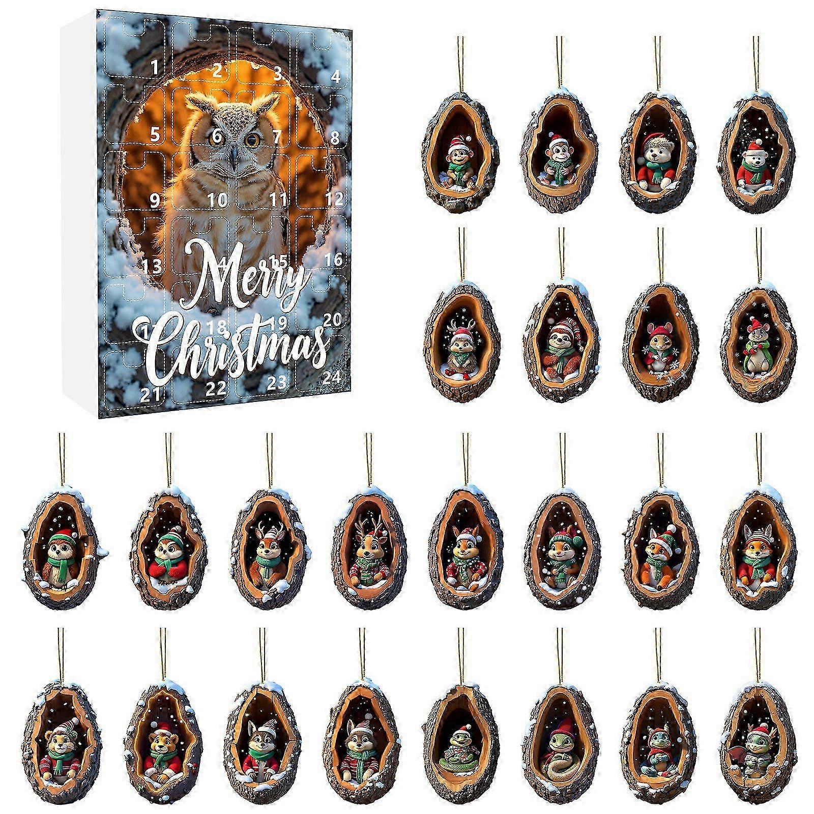 Multi-Color Christmas Advent Calendar 2024: 24 Days of Animals Ornament with Christmas Tree Gift Boxes