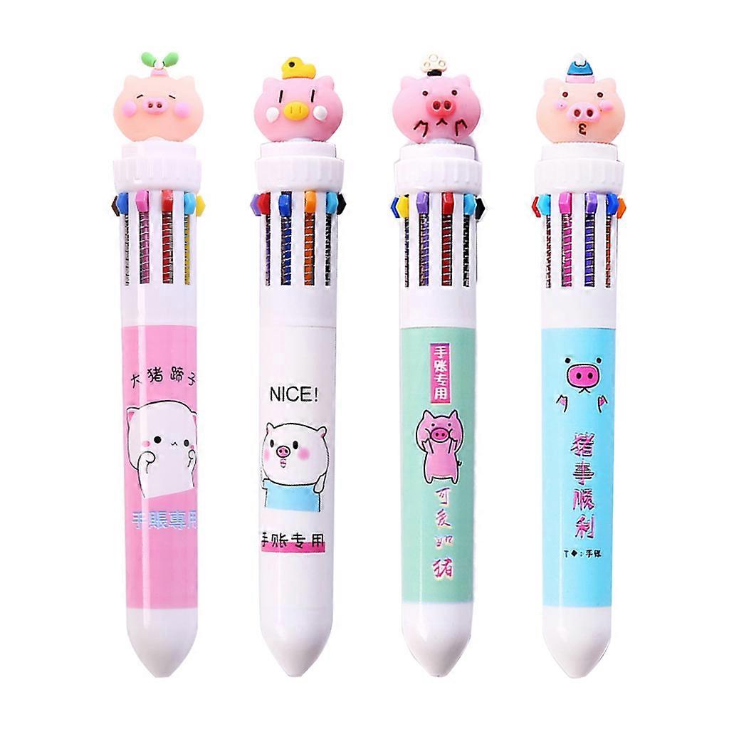Multi-color 10In1 Cute Cartoon Pig Ballpoint Pen Press School Office Supplies Ac Mixed Color