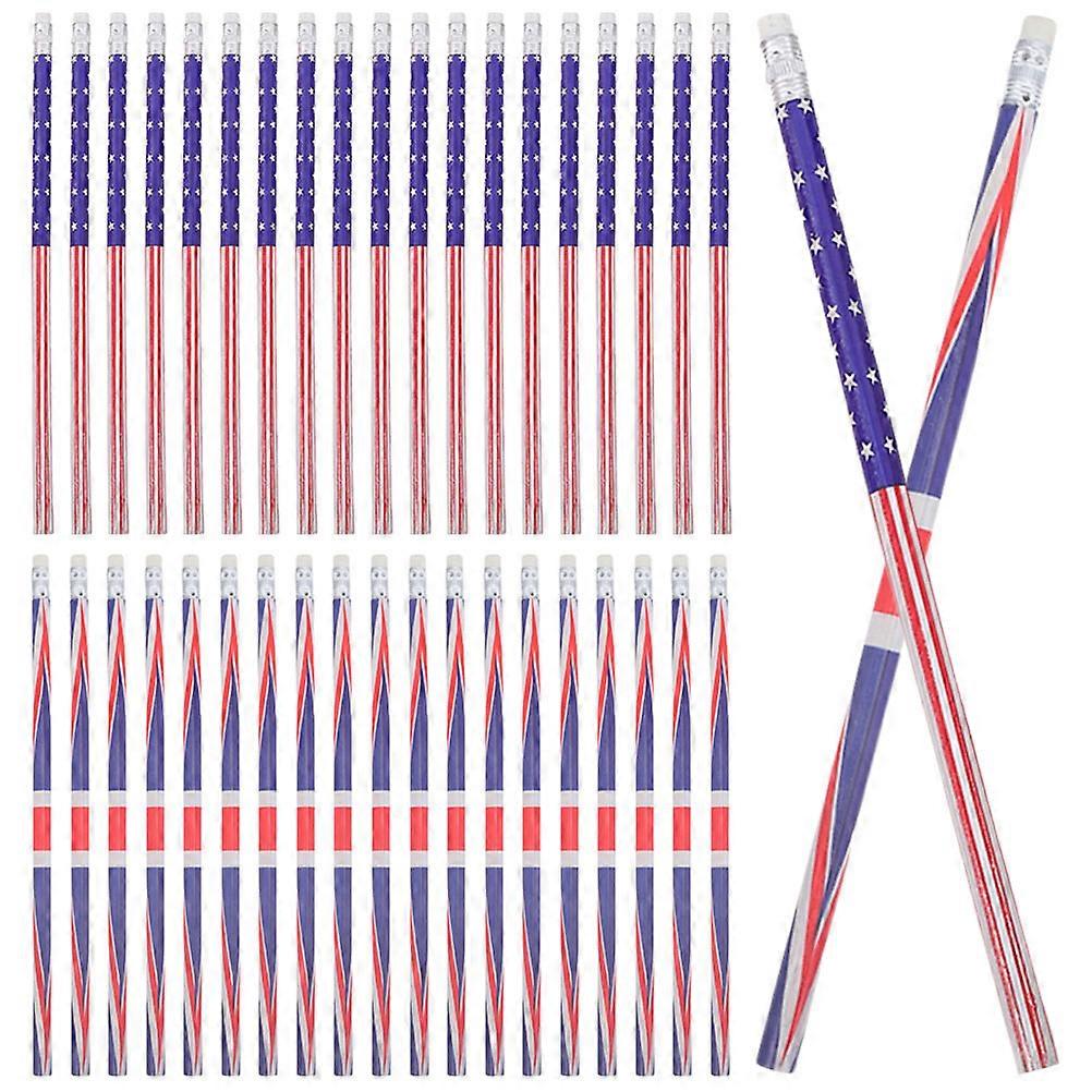 Multi Color Wooden Pencils Flag Theme Drawing Writing For Kids School First Day Independence Day Party Favors 40Pcs