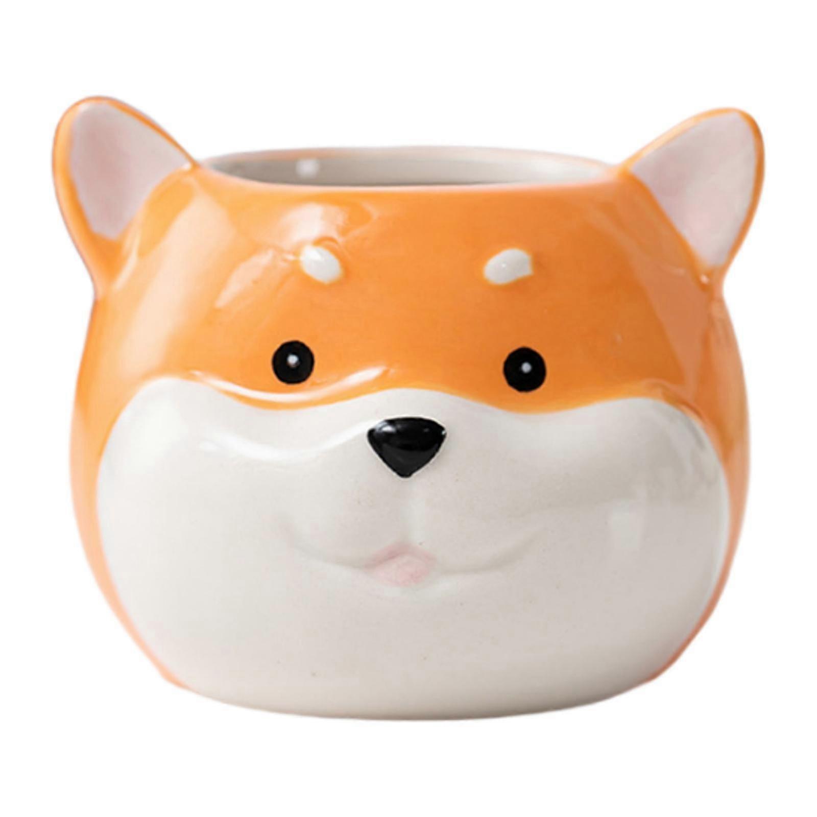 Porcelain Cartoon Dog Puppy Figurine Planter with Drainage Holes Balcony