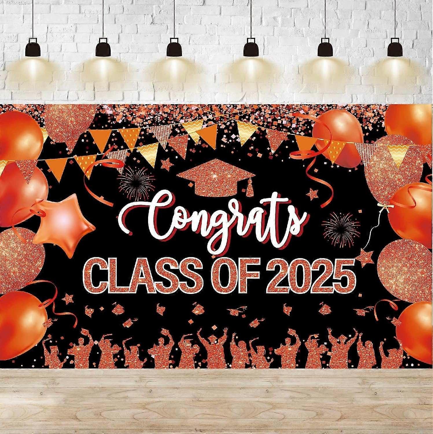 Orange and Black Graduation Decorations Congrats Class of 2025 Banner - Large Graduation Backdrop, C