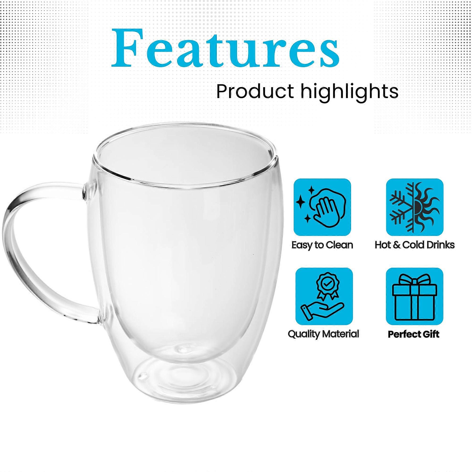 Kaffeglas Teeglas Thermo Glas in 250 - 400ml Doppelwandig Spülmaschinengeeignet Trinkglas Becher mit Henkel
