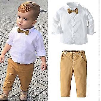 Πουκάμισο φόρεμα ρούχων αγοριών μωρών με παπιγιόν και παντελόνι